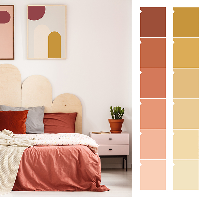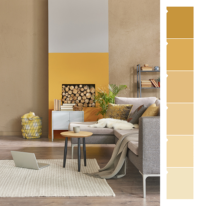 Topli toni se v modnih interierjih pojavljajo takov večjih količinah v vlogi stenskih obdelav in fasadnih barv, manj predani uporabniki pa se lahko odločajo za manjše dekorativne poudarke kot so umetniška dela in hišni tekstil.